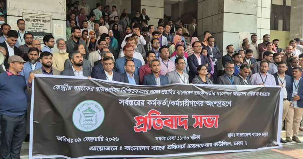কেন্দ্রীয় ব্যাংকের কর্মকর্তাদের সংগঠন অফিসার্স ওয়েলফেয়ার কাউন্সিলের ব্যানারে এ প্রতিবাদ সভা অনুষ্ঠিত হয়।