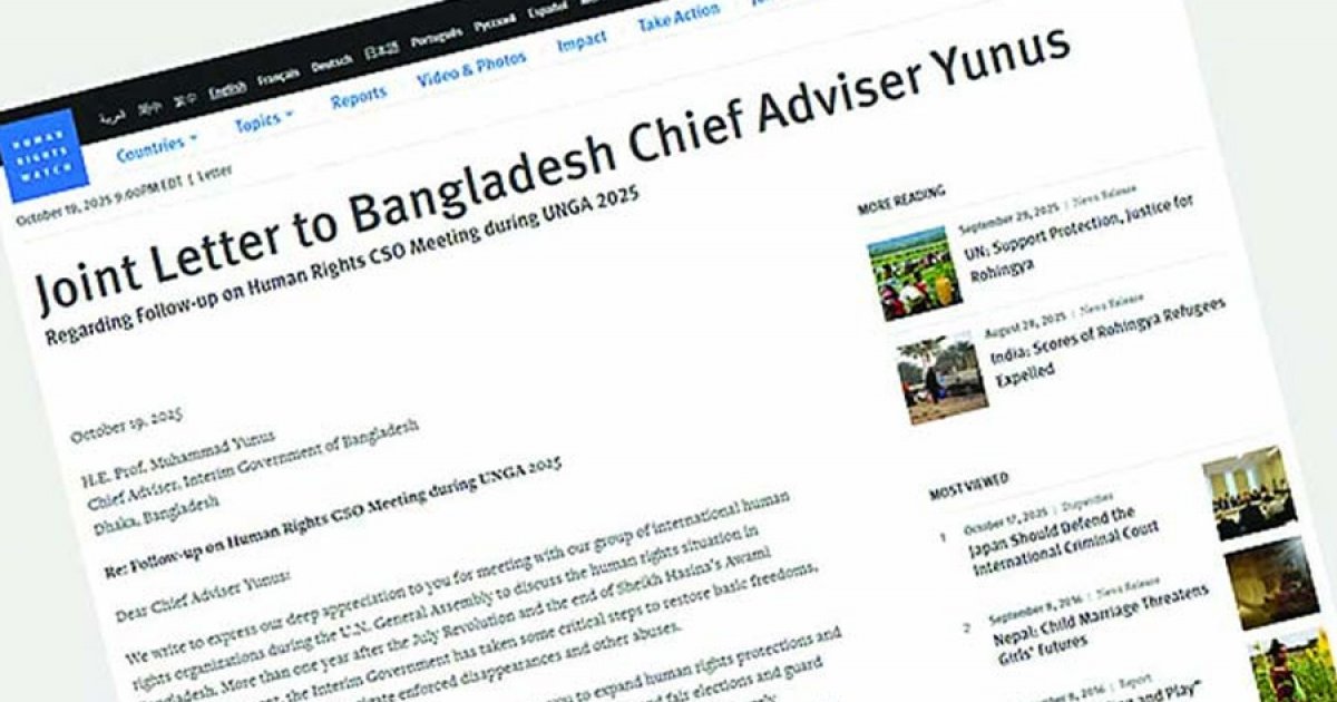 রবিবার (১৯ অক্টোবর) প্রধান উপদেষ্টার উদ্দেশে লেখা এই খোলা চিঠিটি হিউম্যান রাইটস ওয়াচের (এইচআরডব্লিউ) ওয়েবসাইটে প্রকাশ করা হয়েছে।