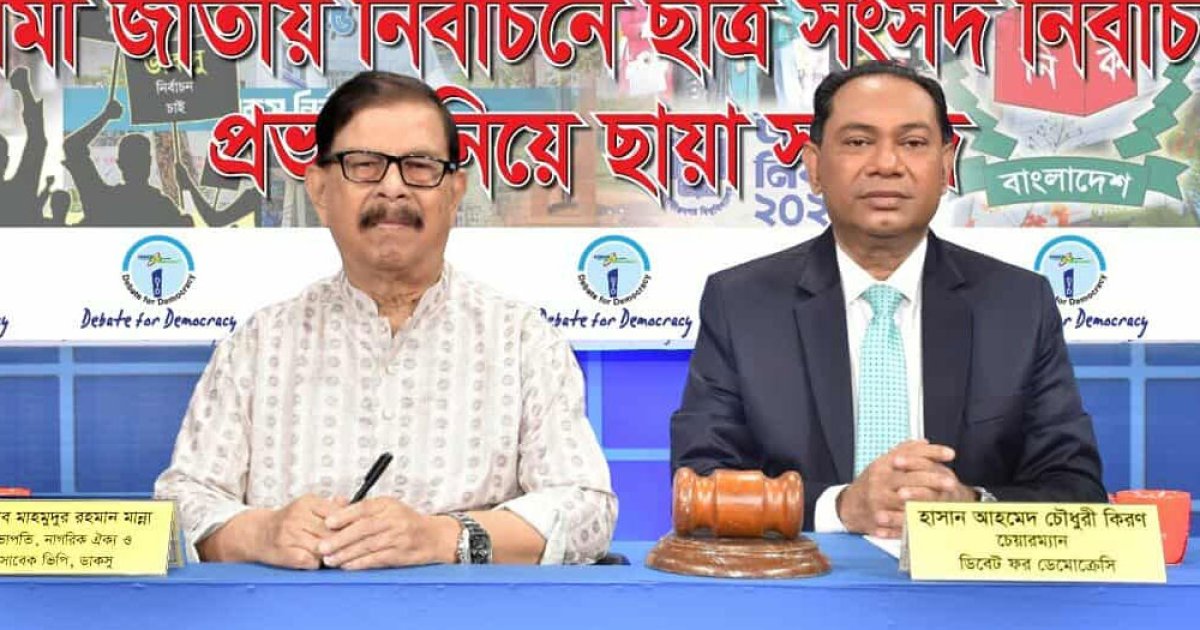 আজ শনিবার (২০ সেপ্টেম্বর) বাংলাদেশ চলচ্চিত্র উন্নয়ন কপোর্রেশনে আগামী জাতীয় নির্বাচনে ছাত্র সংসদ নির্বাচনের প্রভাব নিয়ে আয়োজিত ছায়া সংসদে তিনি এসব কথা বলেন। এতে সভাপতিত্ব করেন ডিবেট ফর ডেমোক্রেসির চেয়ারম্যান হাসান আহমেদ চৌধুরী কিরণ। প্রতিযোগিতাটি আয়োজন করে ডিবেট ফর ডেমোক্রেসি।