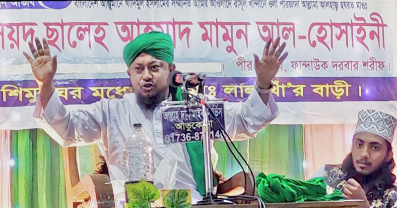 পীর সাহেবের বক্তব্য আসে বুধবার (২৬ নভেম্বর) মাধবপুর উপজেলার শিমুলঘর মধ্যগ্রামে অনুষ্ঠিত ঈসালে সওয়াব মাহফিলে। মাহফিলে প্রধান অতিথি হিসেবে তিনি তরিকতের তালীম প্রদান করেন। এছাড়া মাহফিলে ওয়াজ করেন হাফেজ মাওলানা আব্দুর রহমান, মাওলানা হুমায়ুন কবির, মাওলানা কামাল উদ্দিন আনসারী, মুফতি মোযযাম্মিল হক মাছুমী প্রমুখ। অনুষ্ঠান শেষ হয় মুসলিম উম্মাহর শান্তি ও মুক্তি কামনায় বিশেষ মোনাজাতের মাধ্যমে।