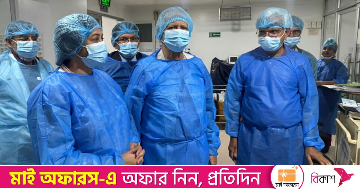 হাসপাতাল পরিদর্শনকালে প্রধান উপদেষ্টার সঙ্গে জাতীয় নিরাপত্তা উপদেষ্টা খলিলুর রহমান উপস্থিত ছিলেন।