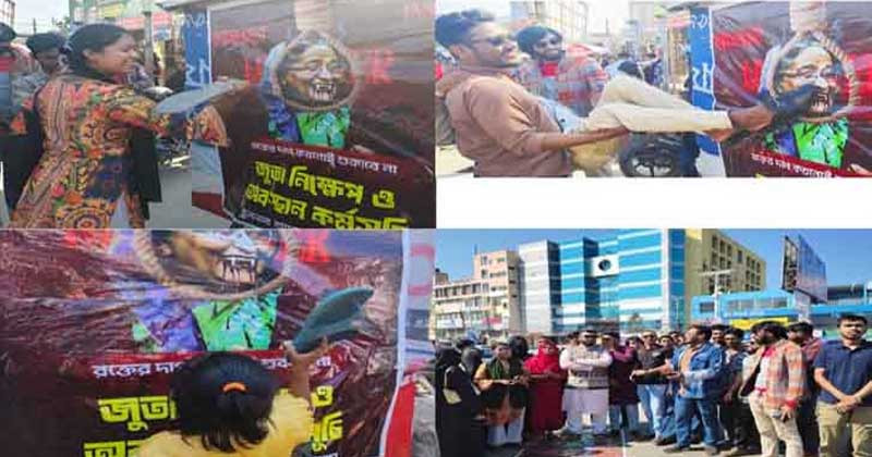 খুলনায় শেখ হাসিনার প্রতিকৃতিতে জুতা নিক্ষেপ
