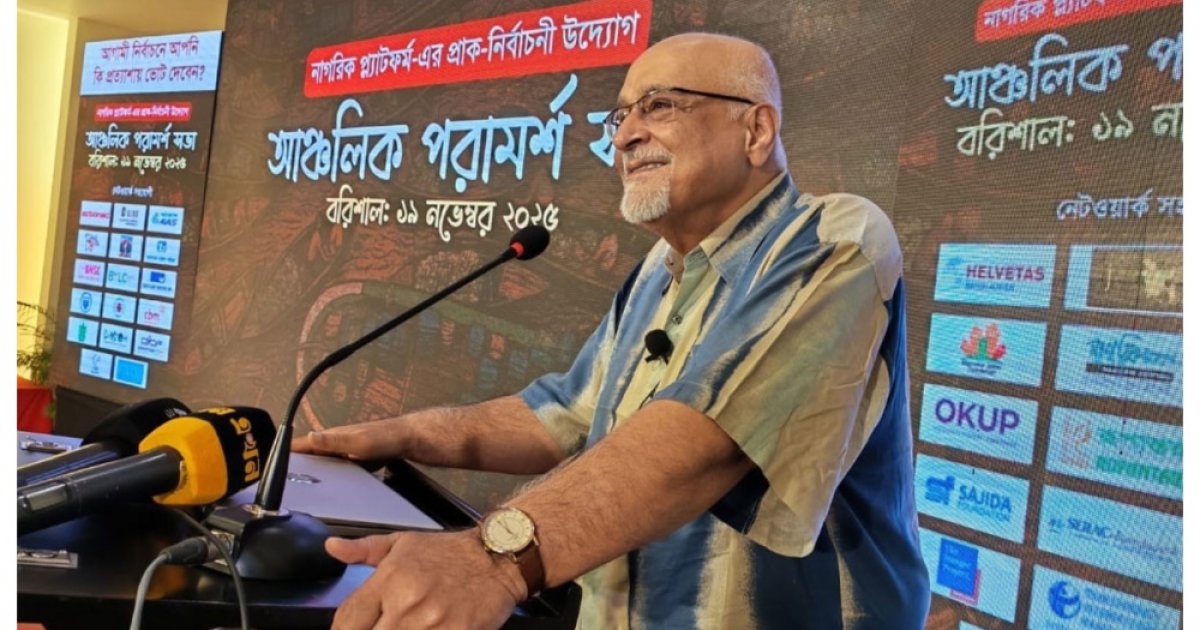 বুধবার (১৯ নভেম্বর) বরিশালের একটি হোটেলে আয়োজিত নাগরিক সংলাপে এ সব কথা বলেন তিনি। আসন্ন ত্রয়োদশ জাতীয় সংসদ নির্বাচনকে সামনে রেখে সাধারণ মানুষের প্রত্যাশা ও তা পূরণের পদ্ধতি নির্ধারণে এ সংলাপের আয়োজন করা হয়।