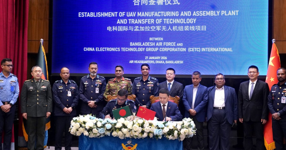 বাংলাদেশ বিমানবাহিনী ও চায়না ইলেকট্রনিক্স টেকনোলজি গ্রুপ করপোরেশন ইন্টারন্যাশনালের (সিইটিসি) মধ্যে ড্রোন উৎপাদন ও সংযোজন কারখানা স্থাপন এবং প্রযুক্তি হস্তান্তরের জন্য জি-টু-জি চুক্তি স্বাক্ষরিত হয়েছে।