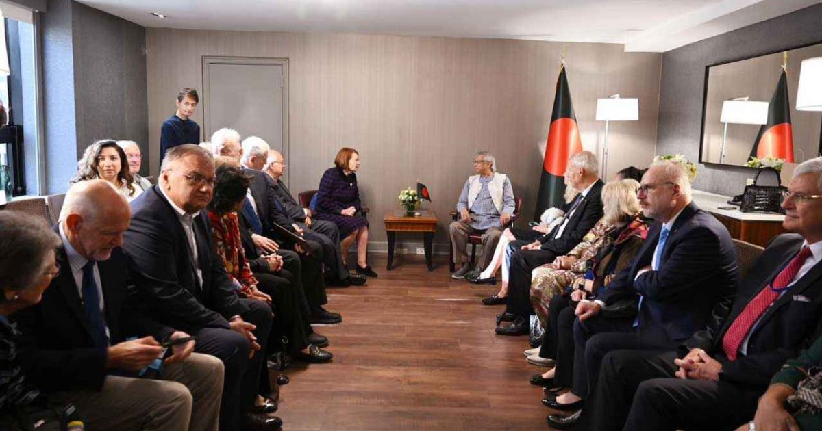 প্রধান উপদেষ্টার প্রেস উইং থেকে জানানো হয়, লাটভিয়ার সাবেক রাষ্ট্রপতি ভায়রা ভেই-ফ্রেইবারগার নেতৃত্বে প্রতিনিধি দল জাতিসংঘের সাধারণ অধিবেশনে অধ্যাপক ইউনূসের সঙ্গে সাক্ষাৎ করে। ভি-ফ্রিবারগা নিজামি গাঞ্জভি, ইন্টারন্যাশনাল সেন্টার (এনজিআইসি)-এর সহ-সভাপতি, যার নাম ১১তম শতাব্দীর বিখ্যাত ফার্সি কবির নামে, হাই-প্রোফাইল গ্রুপে অন্তর্ভুক্ত ছিলেন। এছাড়া স্লোভেনিয়ার সাবেক প্রেসিডেন্ট বরুত পাহোর, সার্বিয়ার সাবেক প্রেসিডেন্ট বরিস তাদি, লাটভিয়ার সাবেক প্রেসিডেন্ট ইগিলস লেভিটস, ইউরোপীয় কাউন্সিলের প্রেসিডেন্ট এমেরিটাস এবং বেলজিয়ামের সাবেক প্রধানমন্ত্রী চার্লস মিশেল, গ্রিসের সাবেক প্রধানমন্ত্রী জর্জ পাপানড্রেউ, বুলগেরিয়ার সাবেক প্রেসিডেন্ট রোজেন প্লেভনেলিভ ও পেটার স্টোয়ানভ, ক্রোয়েশিয়ার সাবেক প্রেসিডেন্ট আইভো জোসিপোভিচ, বসনিয়া ও হার্জেগোভিনার সাবেক প্রেসিডেন্ট ম্লাডেন ইভানিচ এবং মরিশাসের সাবেক প্রেসিডেন্ট আমিনা গুরিব-ফাকিম উপস্থিত ছিলেন।