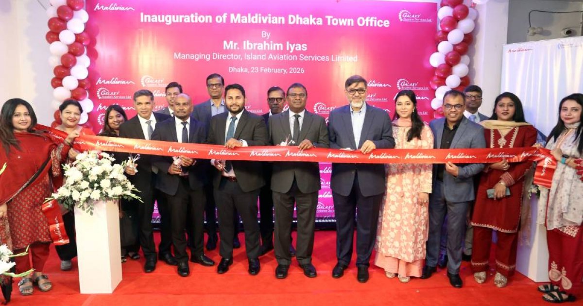 মালদ্বীপের জাতীয় বিমান সংস্থা মালদিভিয়ান এয়ারলাইন্স ঢাকায় তাদের সিটি কার্যালয় উদ্বোধন করেছে। একই সঙ্গে আগামী ১২ মার্চ থেকে ঢাকা-মালে-ঢাকা সরাসরি ফ্লাইট পুনরায় চালুর ঘোষণা দিয়েছে সংস্থাটি। সোমবার (২৩ ফেব্রুয়ারি) গুলশান অ্যাভিনিউয়ের তাজ ম্যারিয়ট ভবনের ঢাকা সিটি কার্যালয়ের উদ্বোধন করেন সংস্থার ব্যবস্থাপনা পরিচালক (এমডি) ইব্রাহিম ইয়াস।