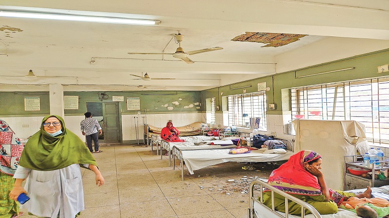 হাসপাতালে ভর্তি হওয়া রোগীর বিছানায় খসে পড়ছে ছাদের পলেস্তারা। এমন দৃশ্য দেখে আতঙ্কে দিন কাটছে চিকিৎসা নিতে আসা রোগী ও তাদের স্বজনদের। এই চিত্র কুমিল্লার দেবিদ্বার উপজেলা স্বাস্থ্য কমপ্লেক্সের শিশু ওয়ার্ডের। গত শনিবার হাসপাতালের দ্বিতীয় তলার শিশু ওয়ার্ডে হঠাৎ ছাদের পলেস্তারা খসে পড়ে। এতে আঘাত পেয়েছেন দুই শিশুরোগীর অভিভাবক।