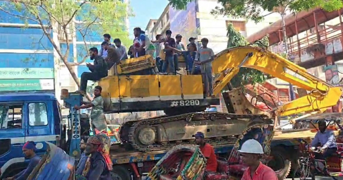 ধানমন্ডি ৩২ নম্বরে বুলডোজার নিয়ে যাচ্ছে একদল তরুণ। আজ সোমবার (১৭ নভেম্বর) দুপুর ১২টার কিছু পর ট্রাকে করে দুটি বুলডোজার নেওয়া হয় ধানমন্ডি ৩২ নম্বরের দিকে। এ সময় বুলডোজারের ওপর কিছু তরুণকে স্লোগান দিতে দেখা যায়।