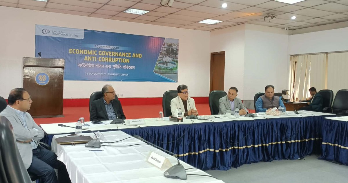 আজ বৃহস্পতিবার (২২ জানুয়ারি) রাজধানীর সিরডাপ মিলনায়তনে ‘ইকোনমিক গভর্নেন্স এন্ড এন্টি করাপশন’ শীর্ষক নীতি সংলাপে এসব কথা বলেন তারা। সংলাপের আয়োজক সেন্টার ফর গভর্ন্যান্স স্টাডিজ (সিজিএস)। এতে অতিথি ছিলেন বেসরকারি গবেষণা সংস্থা পাওয়ার অ্যান্ড পার্টিসিপেশন রিসার্চ সেন্টারের (পিপিআরসি) নির্বাহী চেয়ারম্যান ও ২০০৭-০৮ সালের তত্ত্বাবধায়ক সরকারের সময়ে উপদেষ্টা ড. হোসেন জিল্লুর রহমান। রাজনীতিবিদ, অর্থনীতিবিদ, শিক্ষক ও নাগরিক সমাজের প্রতিনিধিরা এই সংলাপে অংশ নেন।