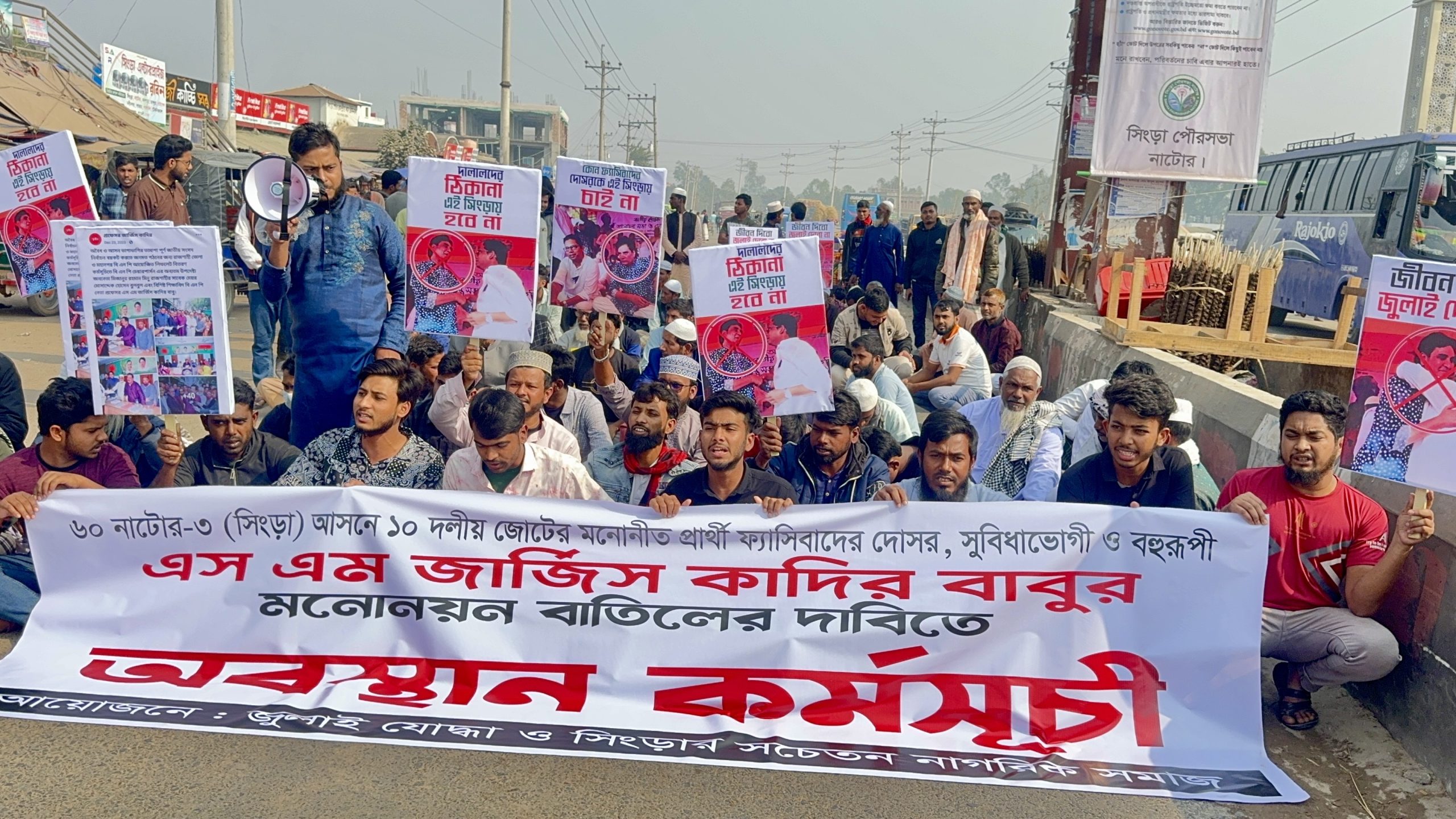 নাটোর: নাটোর-৩ (সিংড়া) আসনে ১০ দলীয় জোটভুক্ত ন্যাশনাল সিটিজেন পার্টি (এনসিপি)-এর প্রার্থী পরিবর্তনের দাবিতে অবস্থান কর্মসূচি ও মহাসড়ক অবরোধ করেছে জুলাই যোদ্ধা ও সিংড়ার সচেতন নাগরিক সমাজ।