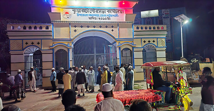 শুক্রবার (২০ ফেব্রুয়ারি) রাত ১১টা থেকে ১১টা ৫৮ মিনিট পর্যন্ত কুয়াকাটা পৌরসভার প্রধান ফটকের সামনে ফুল হাতে অবস্থান নিলেও গেট বন্ধ থাকায় তারা ভেতরে প্রবেশ করতে পারেননি। পরে পার্শ্ববর্তী কুয়াকাটা মাধ্যমিক বিদ্যালয়ে হেঁটে গিয়ে শ্রদ্ধাঞ্জলি জানানো হয়।
