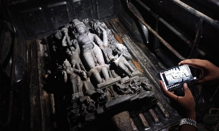 স্থানীয় সূত্র জানায়, প্রায় তিন বছর আগে রুবেল পুকুরটি লিজ নেন। গত বছর পুকুর সংস্কারের পর থেকে ওই এলাকায় অচেনা মানুষের যাতায়াত বেড়ে যায়। এরপরই রোববার বিকেলে র্যাব মেশিন ঘরে অভিযান চালায়। খড়কুটোর নিচে লুকানো অবস্থায় মূর্তিটি উদ্ধার করা হয়। পুকুরের পাহারাদার হানিফ বলেন, ঘরটি দীর্ঘদিন খালি পড়ে ছিল। সেখানে মূর্তিটি রাখা হয়েছিল, কিন্তু স্থানীয়দের কেউ তা টের পাননি। র্যাব এসে মূর্তিটি উদ্ধার করে নিয়ে যায়।