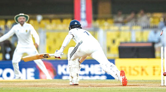 ২৮৮ রানে এগিয়ে থেকে দ্বিতীয়বার ব্যাট করতে নেমে ২৬০ রানে ইনিংস ঘোষণা করে দক্ষিণ আফ্রিকা। ফলে ৫৪৯ রানের বিশাল লক্ষ্য তাড়া করতে নামতে হয় ভারতীয়দের। এতবড় রানের দিকে তাকিয়েই হয়তো পিলে চমকে যাওয়ার মত অবস্থা হয়েছে রিশাভ পান্তদের। যে কারণে নিজেদের স্পিনারদের জন্য তৈরি করা স্পিনিং ট্র্যাকে রাজত্ব করলো প্রোটিয়া স্পিানররা।