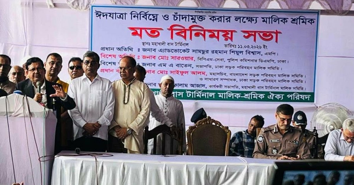 আজ বুধবার মহাখালী বাস টার্মিনালে মালিক-শ্রমিক ঐক্য পরিষদ আয়োজিত ঈদযাত্রা নির্বিঘ্ন ও চাঁদাবাজমুক্ত করার লক্ষ্যে বাস মালিক শ্রমিকদের সঙ্গে এক মতবিনিময়সভায় প্রধান অতিথির বক্তব্যে তিনি একথা বলেন।