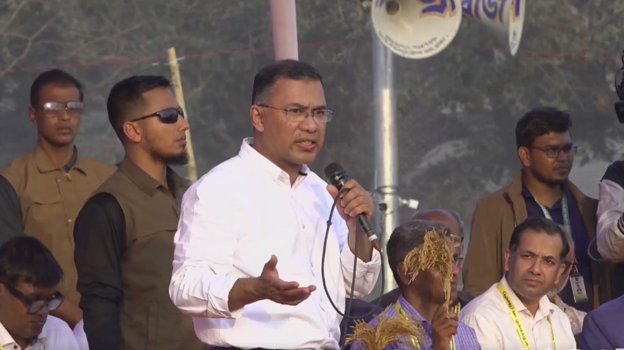 মঙ্গলবার (২৭ জানুয়ারি) বিকেলে ময়মনসিংহ জেলা সার্কিট হাউস মাঠে আয়োজিত এক বিশাল নির্বাচনী জনসভায় তিনি এসব কথা বলেন। এর আগে বেলা ৪টা ৩ মিনিটে স্ত্রী ডা. জোবায়দা রহমানসহ মঞ্চে ওঠেন তারেক রহমান।