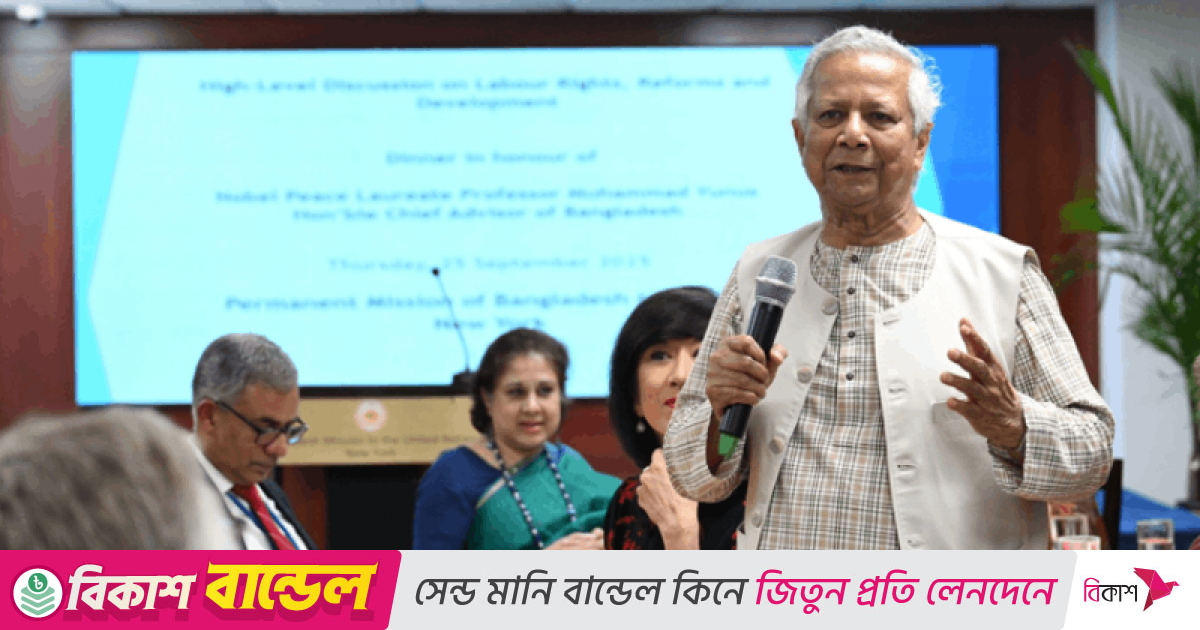 বৃহস্পতিবার (১৫ সেপ্টেম্বর) জাতিসংঘে বাংলাদেশের স্থায়ী মিশন আয়োজিত এক উচ্চপর্যায়ের নৈশভোজ অনুষ্ঠানে প্রধান অতিথি হিসেবে উপস্থিত হয়ে এ কথা বলেন প্রধান উপদেষ্টা ড. মুহাম্মদ ইউনূস।