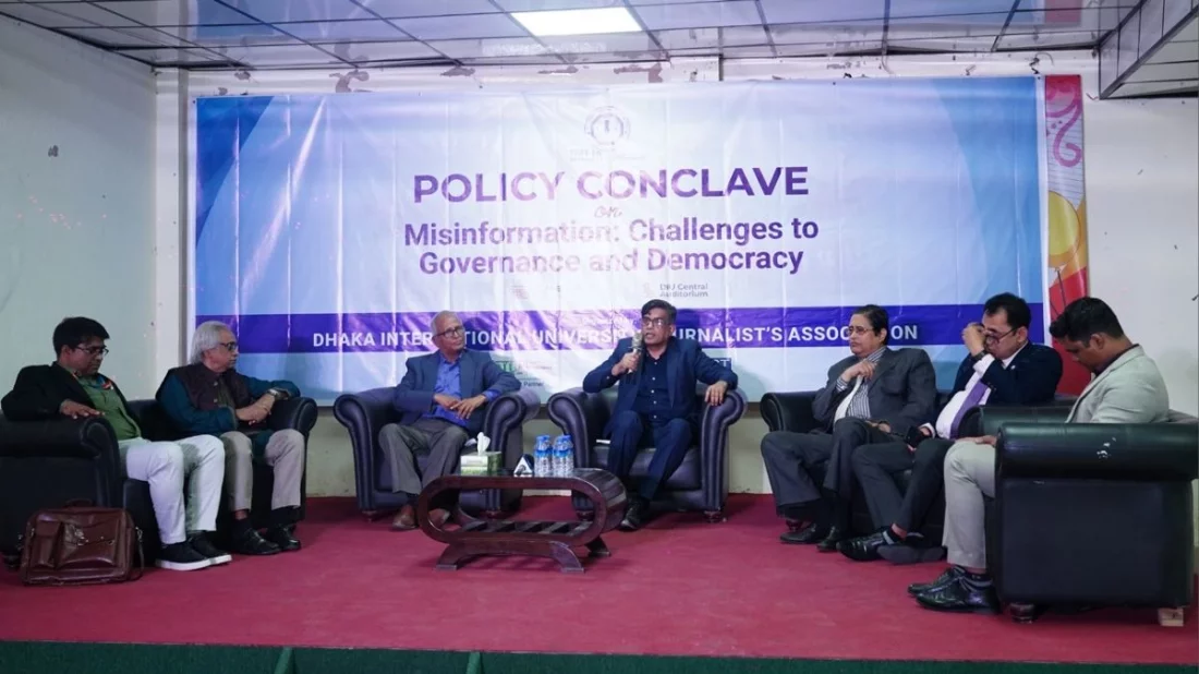 সোমবার (২ ফেব্রুয়ারি) ঢাকা ইন্টারন্যাশনাল ইউনিভার্সিটির কেন্দ্রীয় অডিটোরিয়ামে অনুষ্ঠিত ‘পলিসি কনক্লেভ অন মিসইনফরমেশন: চ্যালেঞ্জেস টু গভর্ন্যান্স অ্যান্ড ডেমোক্রেসি’ শীর্ষক নীতিসংলাপে এসব কথা বলেন তিনি। ঢাকা ইন্টারন্যাশনাল ইউনিভার্সিটি সাংবাদিক সমিতি (ডিআইইউসাস) বিশ্ববিদ্যালয় কর্তৃপক্ষের সহযোগিতায় এ নীতিসংলাপের আয়োজন করে।