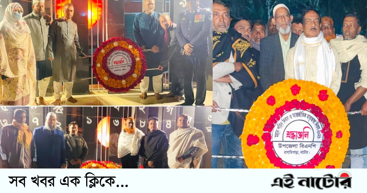 মহান শহীদ দিবস ও আন্তর্জাতিক মাতৃভাষা দিবস উপলক্ষে নাটোরের বাগাতিপাড়ার কেন্দ্রীয় শহীদ মিনারে পুষ্পস্তবক অর্পণ করা হয়েছে।