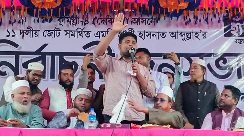 আসন্ন ১২ ফেব্রুয়ারির জাতীয় সংসদ নির্বাচনে শাপলাকলি প্রতীকের বিজয় নিয়ে দৃঢ় আশাবাদ ব্যক্ত করেছেন কুমিল্লা-৪ (দেবিদ্বার) আসনে জামায়াতে ইসলামী নেতৃত্বাধীন ১১ দলীয় জোট মনোনীত প্রার্থী এবং জাতীয় নাগরিক পার্টি (এনসিপি)-এর দক্ষিণাঞ্চলের মুখ্য সংগঠক হাসনাত আব্দুল্লাহ।