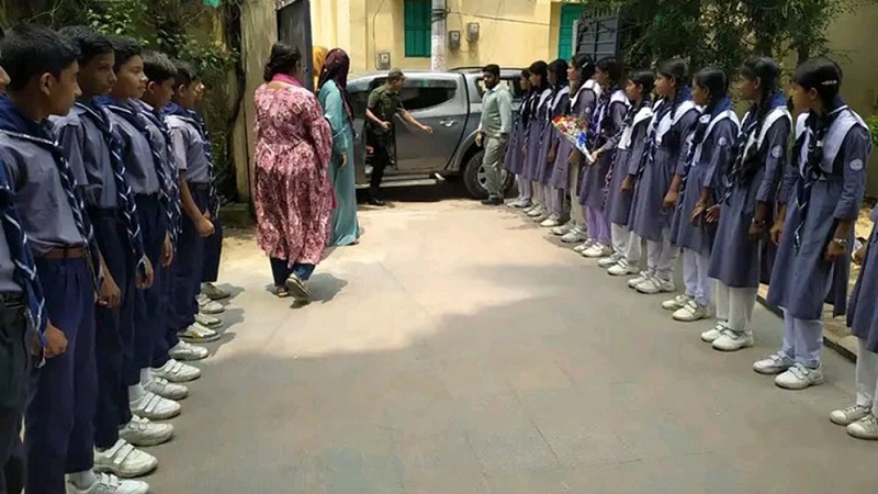 সামাজিক যোগাযোগমাধ্যমে ছড়িয়ে পড়া ছবিতে দেখা যায়, ইউএনওর গাড়ি আগমনের সময় একজন আনসার সদস্য গাড়ির দরজা খুলে দিচ্ছেন এবং সড়কের দুপাশে সারিবদ্ধভাবে দাঁড়িয়ে রয়েছে শিক্ষার্থীরা। গাড়ি থেকে নামার পর তাকে ফুলের তোড়া দিয়ে শুভেচ্ছা জানানো হয়। এ সময় এক শিক্ষার্থীকে সড়কের মাঝখানে দাঁড়িয়ে স্যালুট করতেও দেখা যায়। পরে ইউএনও ফুলের তোড়া হাতে নিয়ে অনুষ্ঠানস্থলে প্রবেশ করেন।