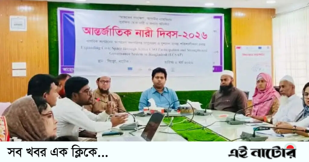 “আজকের পদক্ষেপ, ন্যায়বিচার সুরক্ষিত হোক নারী ও কন্যার অধিকার” এই প্রতিপাদ্যকে সামনে রেখে নাটোরের বাগাতিপাড়ায় আন্তর্জাতিক নারী দিবস–২০২৬ উদযাপন করা হয়েছে। দিবসটি উপলক্ষে রবিবার (৮ মার্চ) দুপুরে উপজেলা প্রশাসন ও উপজেলা মহিলা বিষয়ক কর্মকর্তার কার্যালয়ের উদ্যোগে উপজেলার বড়াল সভাকক্ষে নারী ও কিশোরীদের অংশগ্রহণে এক আলোচনা সভা অনুষ্ঠিত হয়। উপজেলা নির্বাহী কর্মকর্তা (ইউএনও) মোহাম্মদ আলাউদ্দিনের সভাপতিত্বে […]