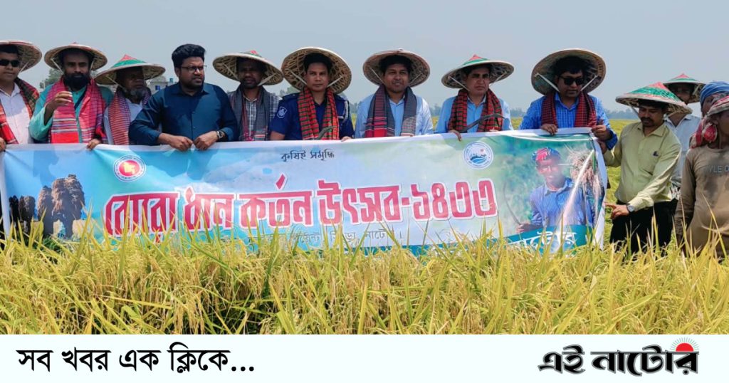 চলনবিলে বোরো ধান কাটা উৎসবের উদ্বোধন