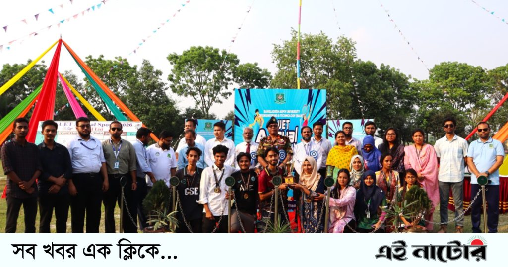 নাটোরের বাগাতিপাড়ার বাংলাদেশ আর্মি ইউনিভার্সিটি অব ইঞ্জিনিয়ারিং এন্ড টেকনোলজি (বাউয়েট) ক্যাম্পাসের কেন্দ্রীয় খেলার মাঠে ‘বাউয়েট বার্ষিক ক্রীড়া প্রতিযোগিতা ও পুরস্কার বিতরণী অনুষ্ঠান–২০২৬’ অনুষ্ঠিত হয়েছে। গত সোমবার (১৩ মার্চ ২০২৬) এ প্রতিযোগিতার আয়োজন করা হয়।অনুষ্ঠানে প্রধান অতিথি হিসেবে উপস্থিত ছিলেন বিশ্ববিদ্যালয়ের উপাচার্য ব্রিগেডিয়ার জেনারেল এস এম লুৎফর রহমান। সকালে জাতীয় পতাকা ও বিশ্ববিদ্যালয়ের পতাকা উত্তোলন, কবুতর […]
